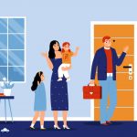 玄関先での見送り: