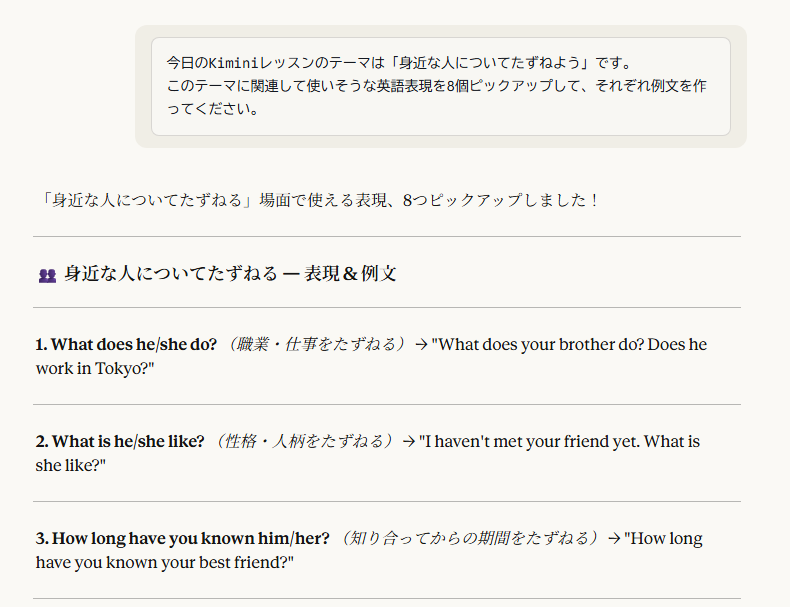 今日のKiminiレッスンのテーマは「[テーマ名]」です。