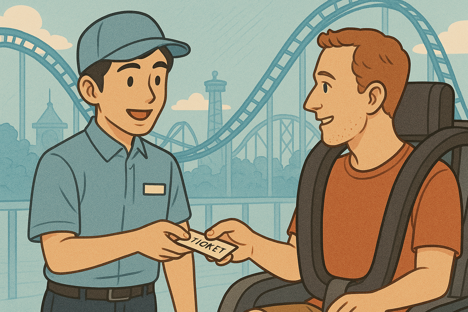 ありがとうございます。こちらがチケットです。どうぞお楽しみください!