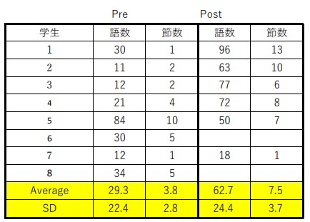 中級の学生よりも、初心者の方が喋る節、語彙数、誤用に大きな改善が見られました。