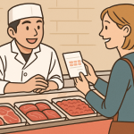 精肉店は、日常的な買い物の場でありながら、外国人にとっては新鮮で文化的な体験でもあります。「この部位は焼肉向きです」「脂身少なめにカットしましょうか?」など、一言でも英語で接客できれば、大きな安心感につながるでしょう。