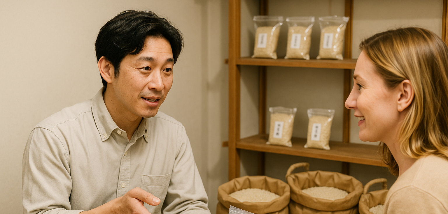 近年では、観光地や商店街の米屋で「このお米は寿司に合う?」「玄米と白米の違いは?」といった質問を外国人から受ける場面も増えており、英語での基本的な案内ができると喜ばれます。
