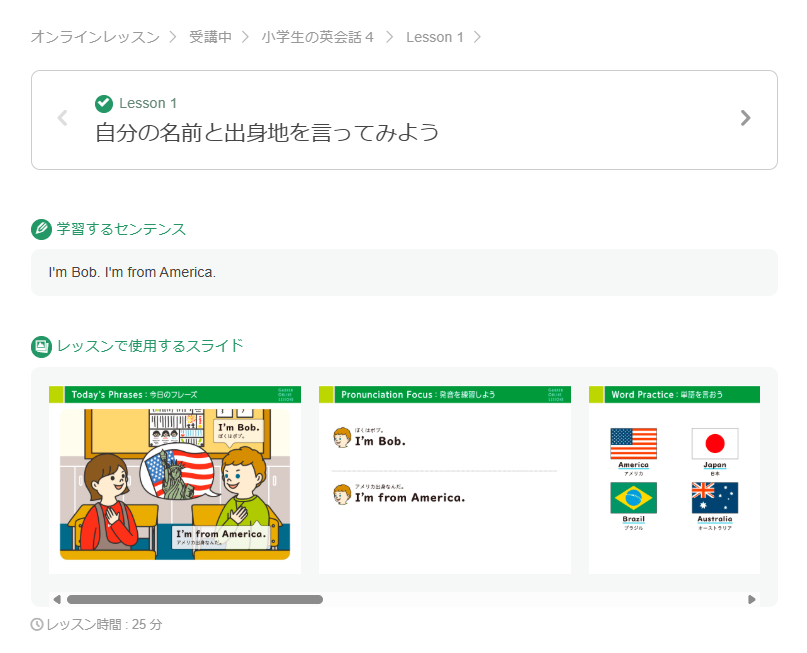 「小学生の英会話4」は、25分×40レッスンで構成されています。