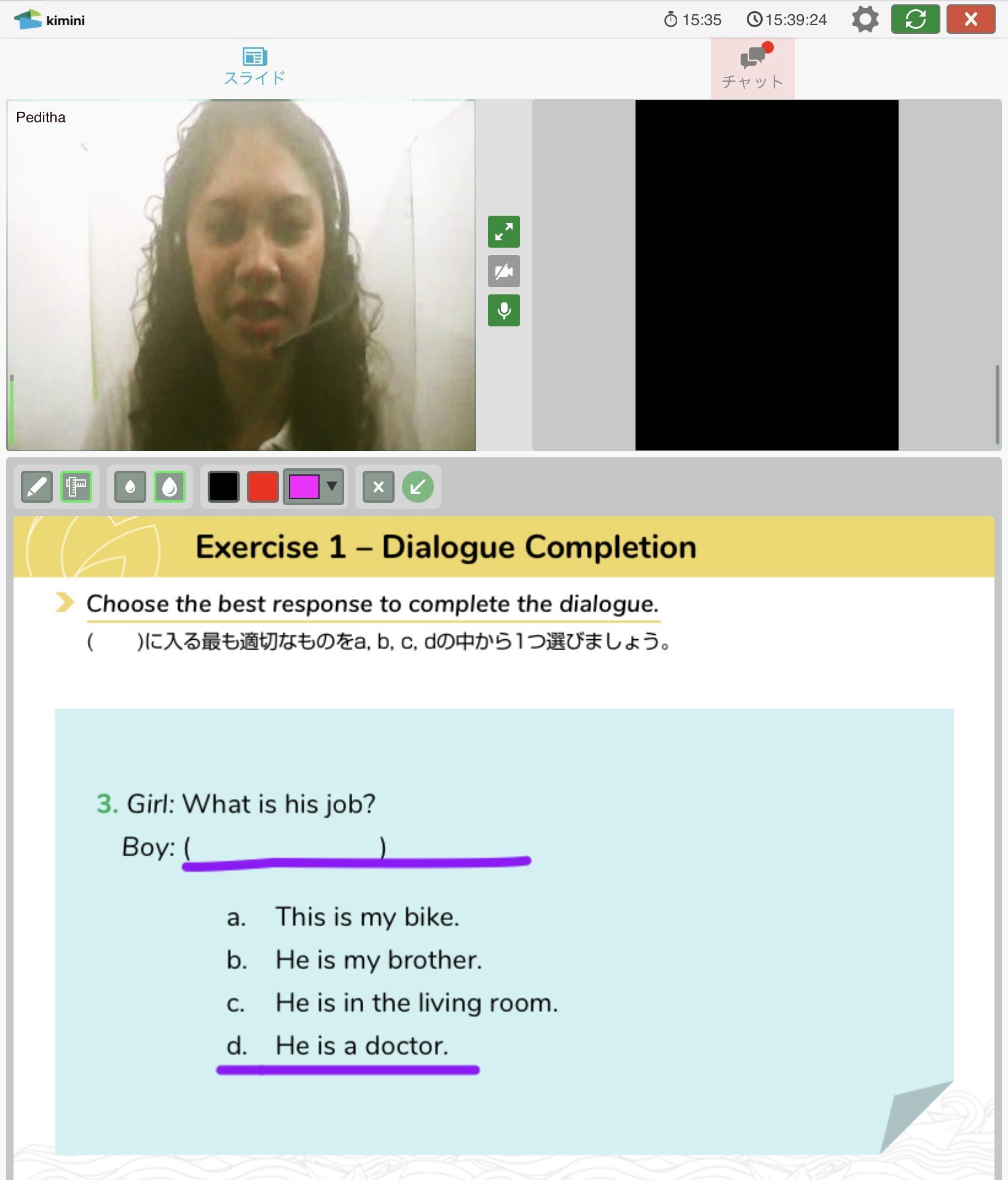 Kiminiオンライン英会話では、「小学生の英会話2」と「小学生の英会話4」を受講したことがある娘。