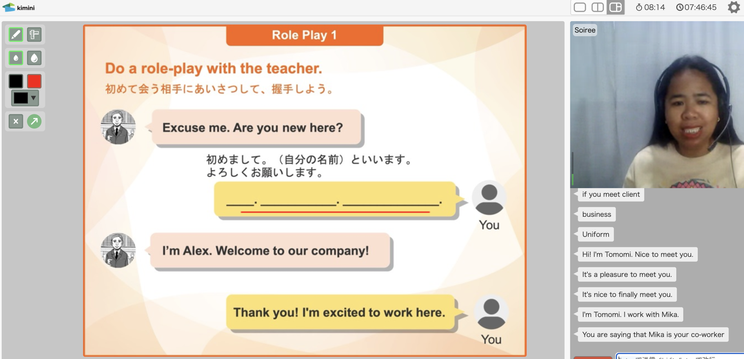 さらに、講師とのロールプレイを通じて、実際の会話での使い方をイメージしながら練習し、実践力の向上を目指します。