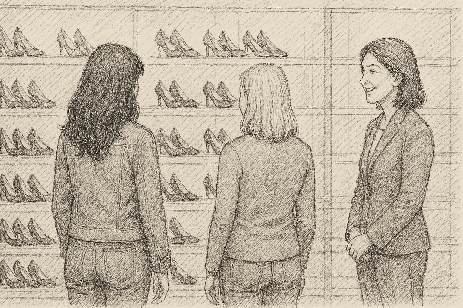 靴専門店の店員は、お客様のニーズをヒアリングし、用途や足のサイズに合った靴を提案する役割を担います。