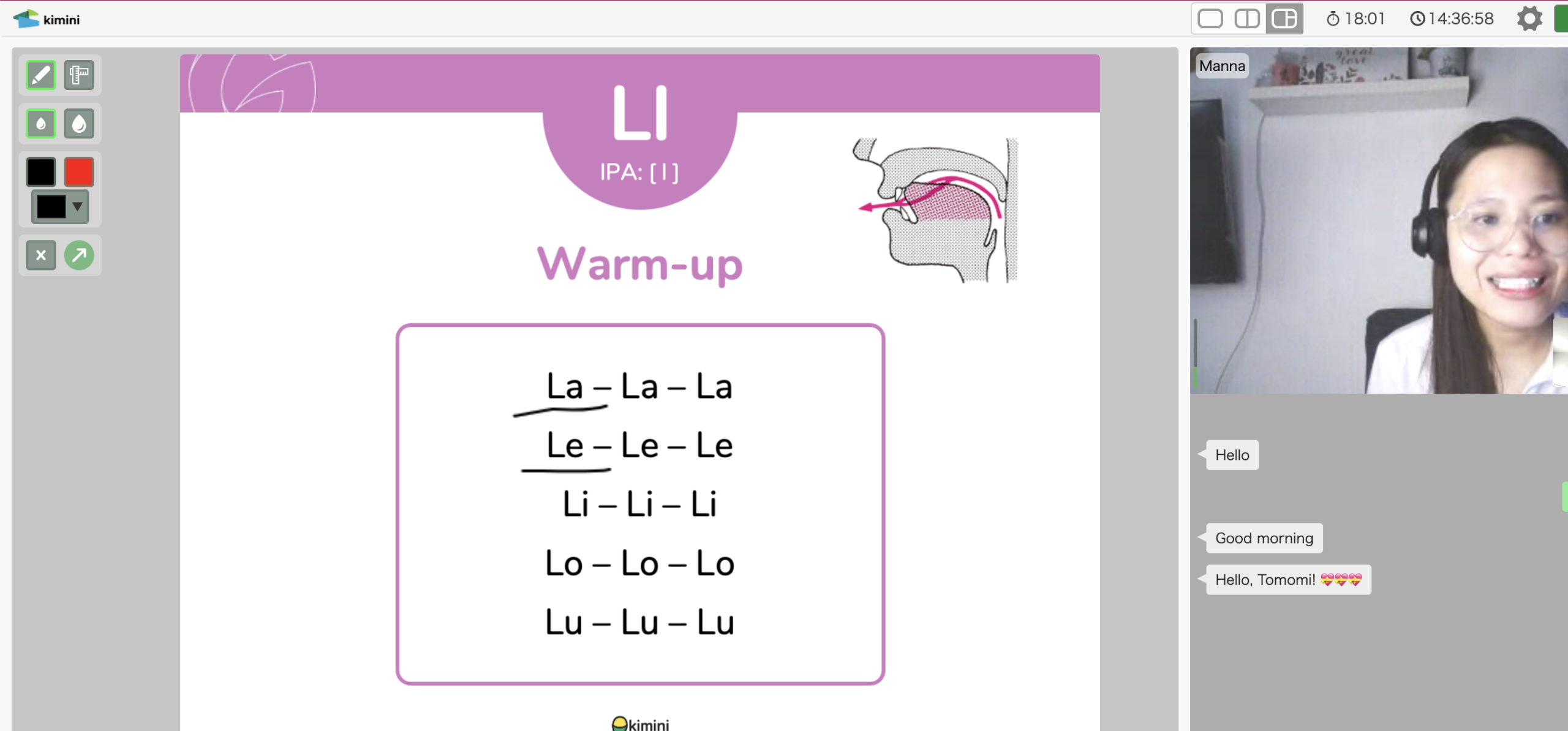 特に最初の「L」の発音には予想以上に時間がかかり、全体のレッスン時間がやや足りないと感じる部分もありました。