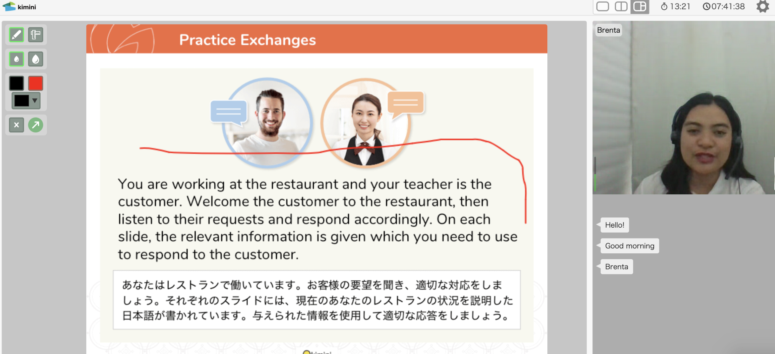 ですが、講師がすぐに判断してドリルパートに戻してくれたので、語彙やフレーズをしっかり確認できて安心して続けられました。