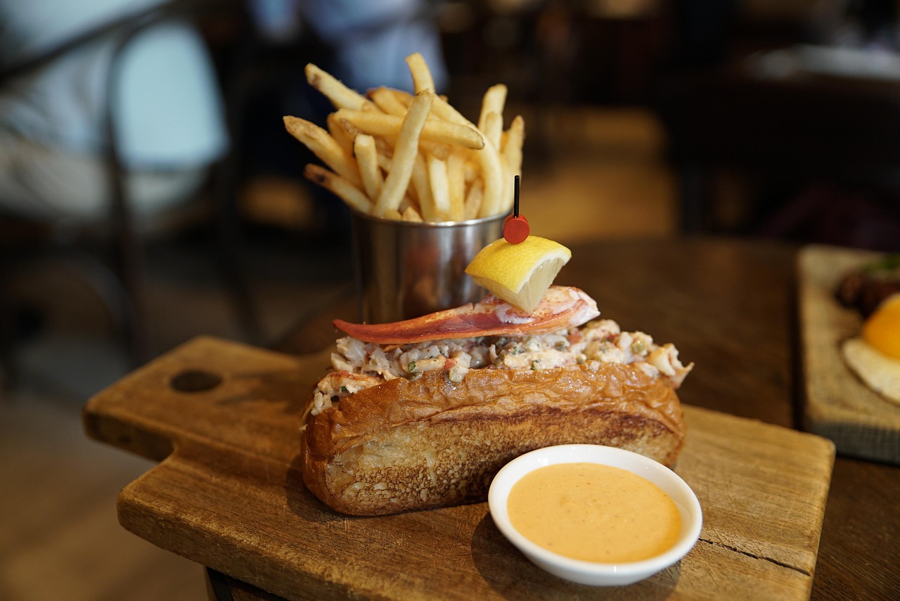 ロブスターロール(Lobster Roll)は、バターやマヨネーズで和えたロブスターの身をパン(ホットドッグバンのようなロール)に挟んだシーフードサンドイッチです。