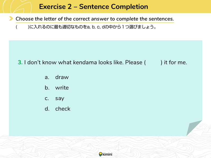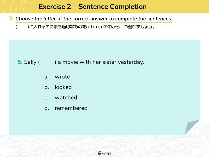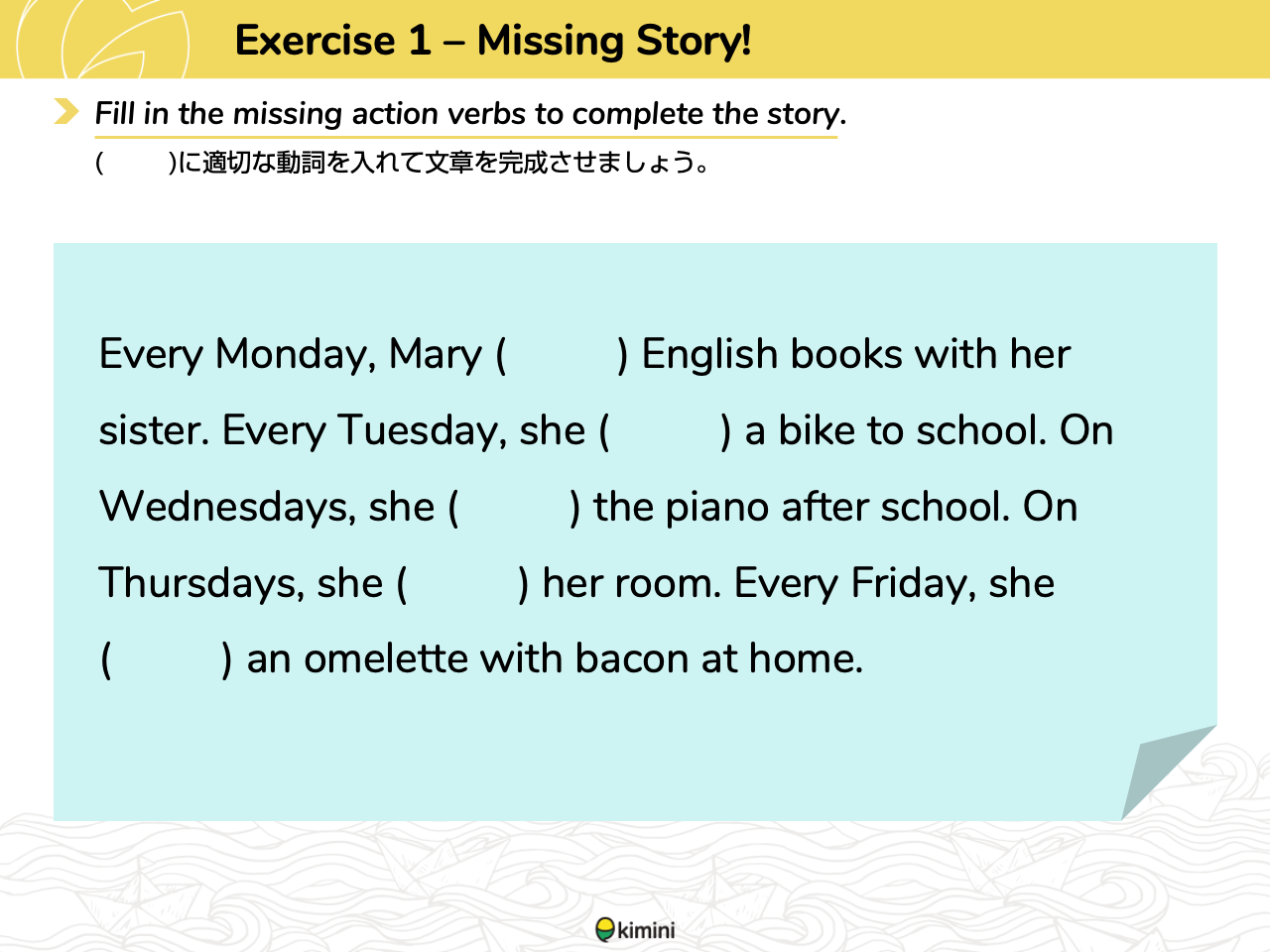 ターゲットとなる文法や語彙に関する穴埋め問題を行います。