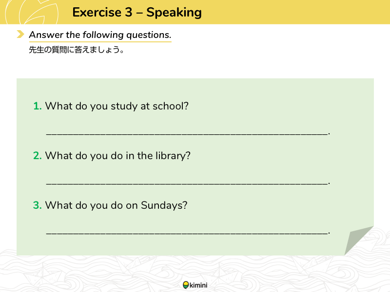 今日習ったことを使って自分のことを話す練習を行います。