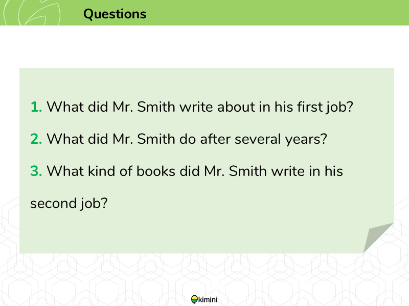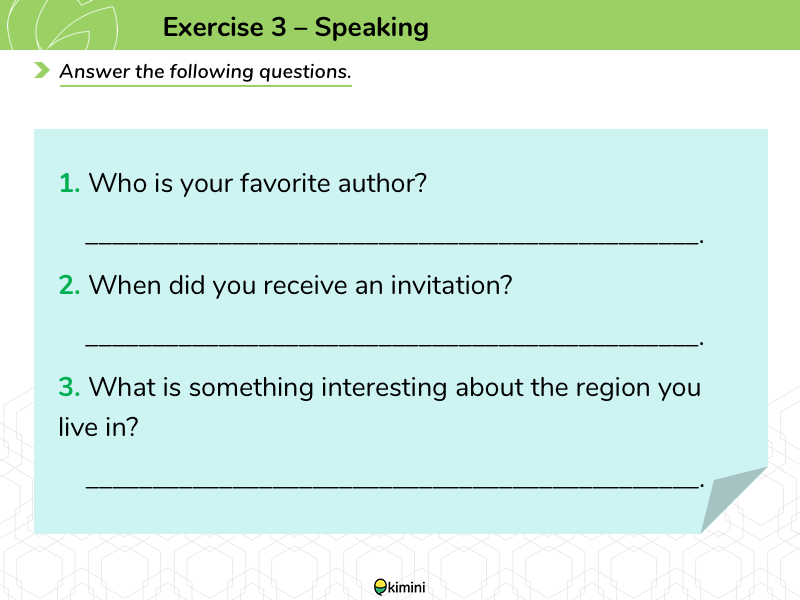 読んだ文章に関する質問をします。ターゲットとなる文法や語彙・フレーズを使って講師の質問に答えます。
