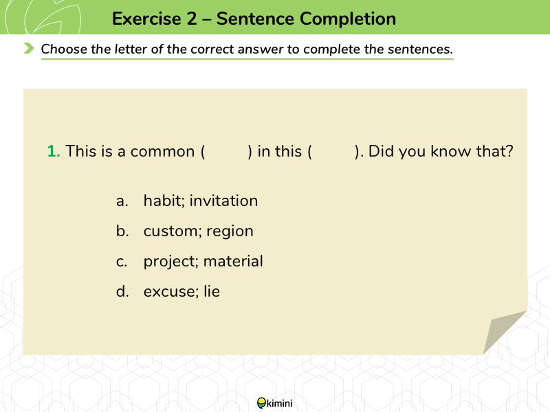 大問2では会話表現の知識も問われます。知らないと意味を取りにくいものもありますので, 使用状況をイメージしながら声に出して練習して覚えましょう。