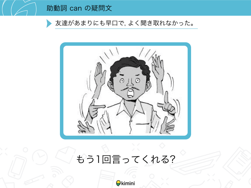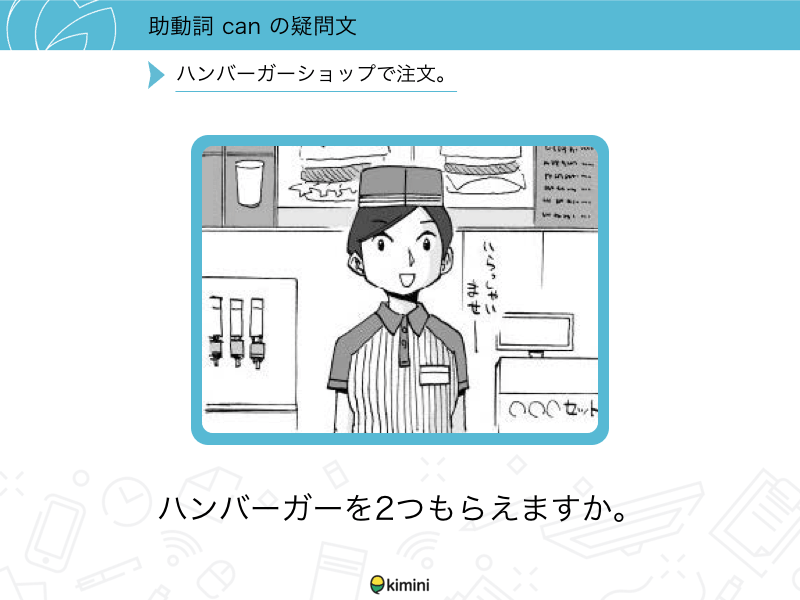 Lesson 2 助動詞canの疑問文助動詞canの疑問文を使った会話の練習をします。