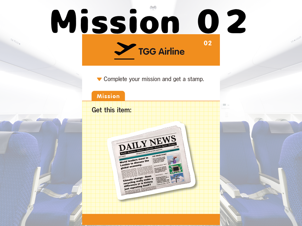 - <ミッション例>ホテルでお部屋を予約するミッションや飛行機内で雑誌をもらうミッションなど
