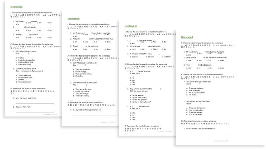 レッスンのためにしている事は、朝学校に行く前に、予習の動画を見ることです。予習の動画を見ると、レッスンでどんな事をやるのか分かるし、先生の会話も聞き取りやすくなります。レッスンが終わってからは、習った事を忘れないように、単語を覚えたり、文法の復習をしたり、復習動画やプリントで何度も読む練習をしています。