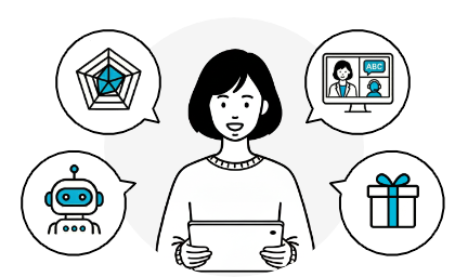 コースとは、複数の教材や異なるレッスン内容を組み合わせて、オンラインレッスンでの学習に特化させたプログラムです。学研の持つ英語学習のノウハウを元に、目標やレベルごとに独自に編集してご提供しています。またコースの進捗はシステムが自動的に管理し案内をします。そのため「今日はどのレッスンをやろうか」と毎回迷う手間がありません。レッスンごとに予習・復習が提供されるほか、適切なタイミングで進捗度テストも実施しながら、確実に英会話力を伸ばしていきます。