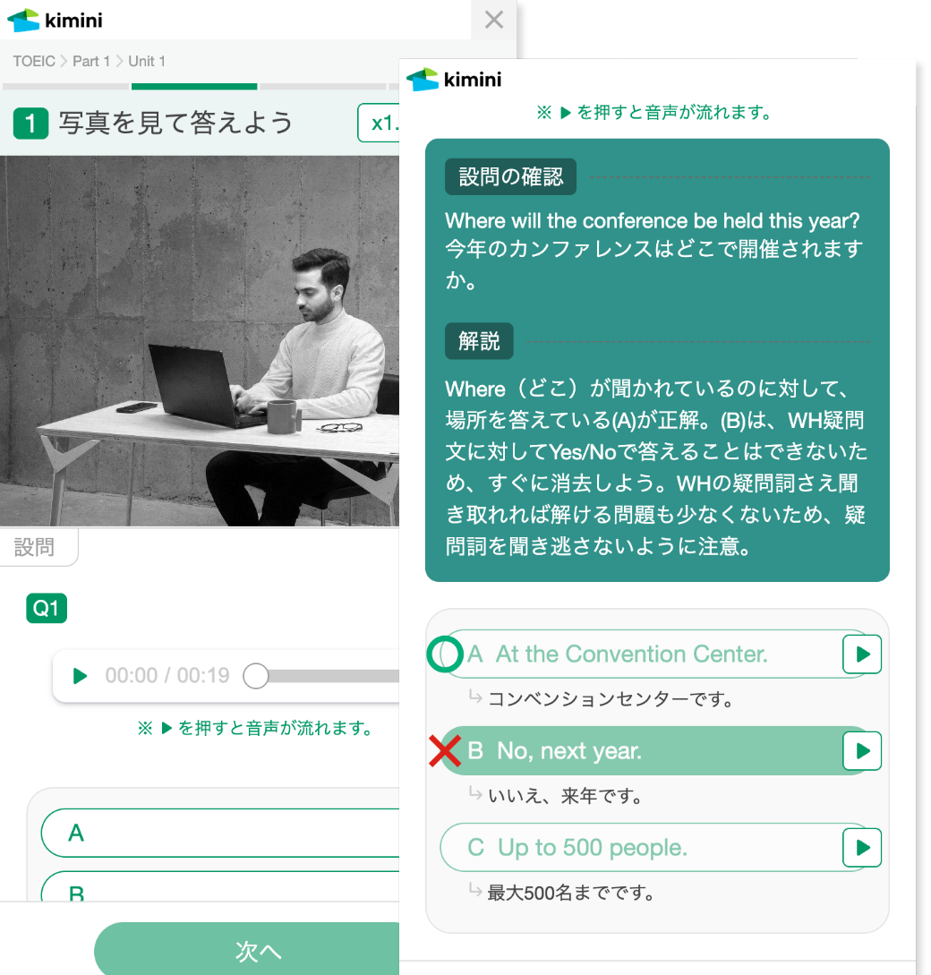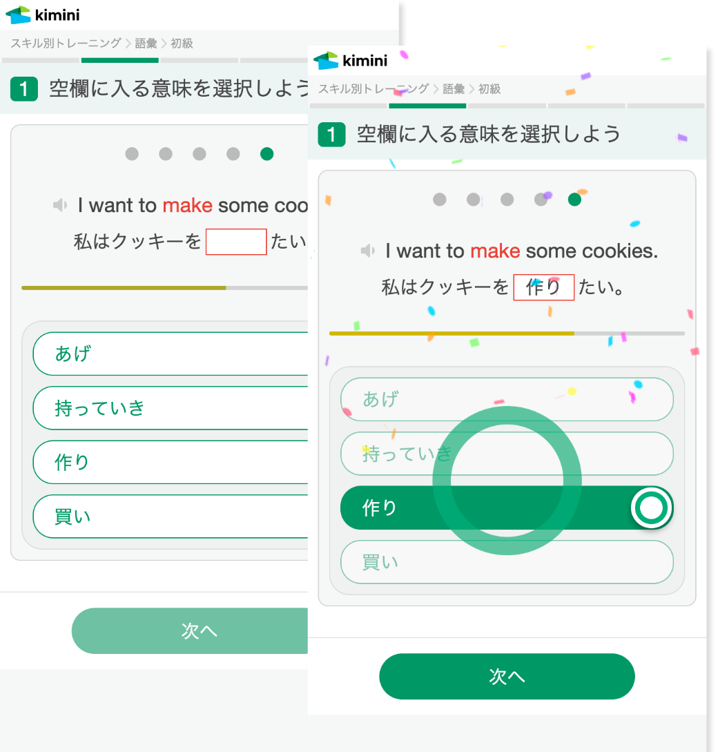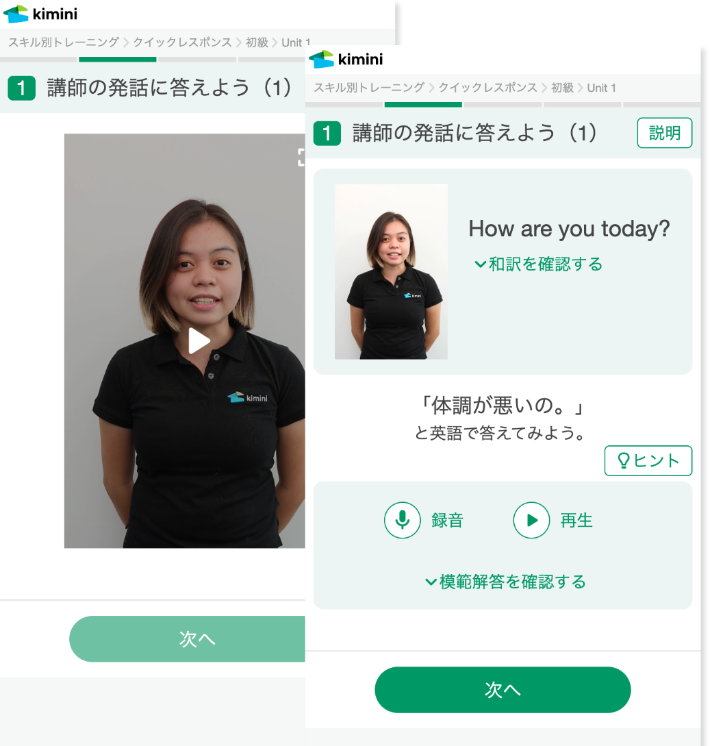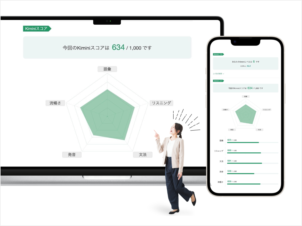 生徒の理解度に応じてレッスン内容が最適化されるKimini Plusコースを受講できます。