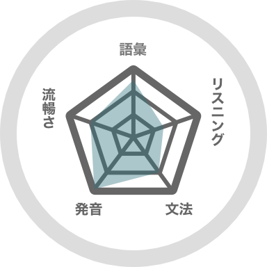 最新のAI技術が英語力を可視化- 学研とシリコンバレーに拠点を置くテスト開発企業と共同開発したAIスピーキングテストシステムが、英語力を語彙・リスニング・文法・発音・流暢さのカテゴリーで分析。現時点での課題や弱みがわかることで、学習コースを見直し、最適なものにすることができます。