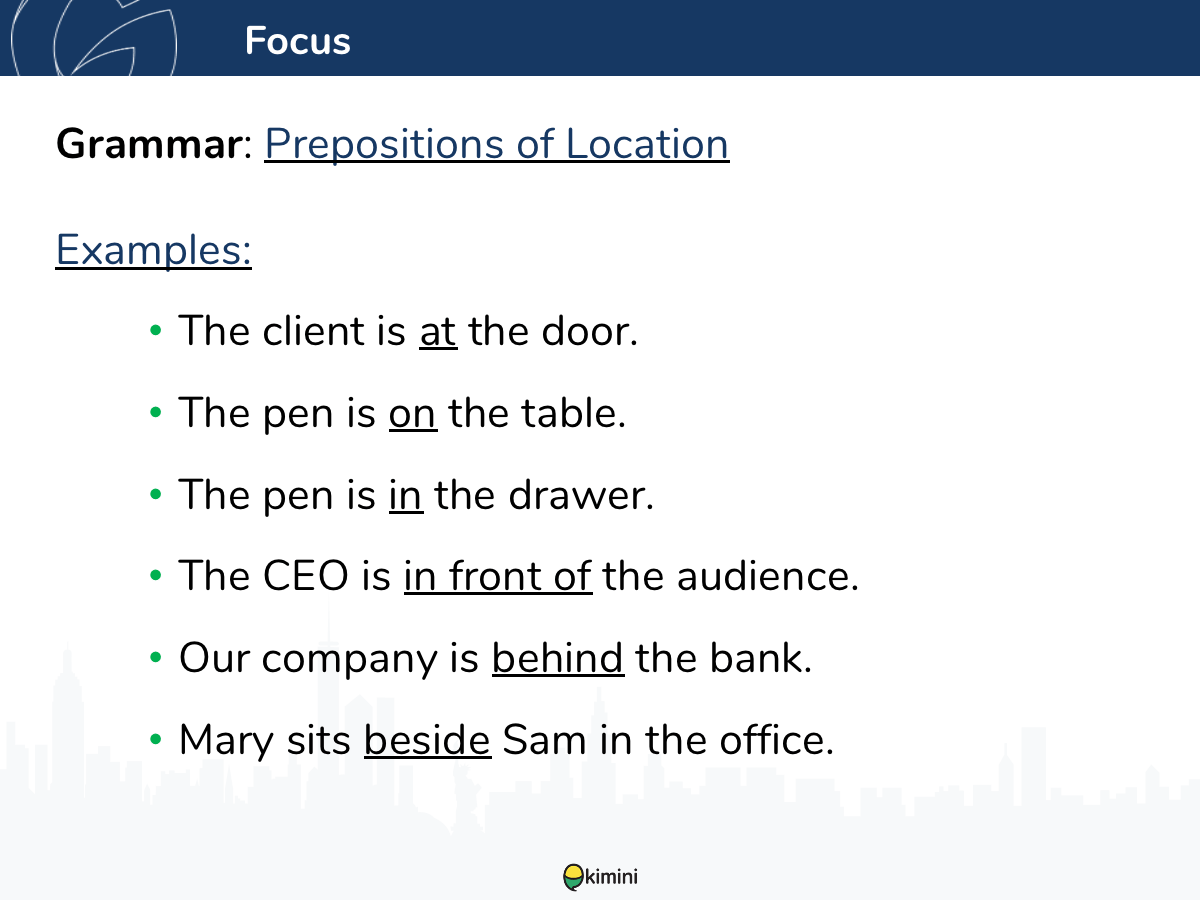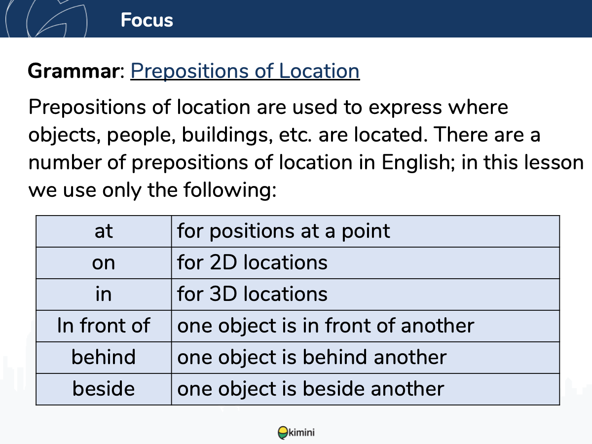 Lesson 1 場所を表す前置詞場所を表す前置詞を学びます。