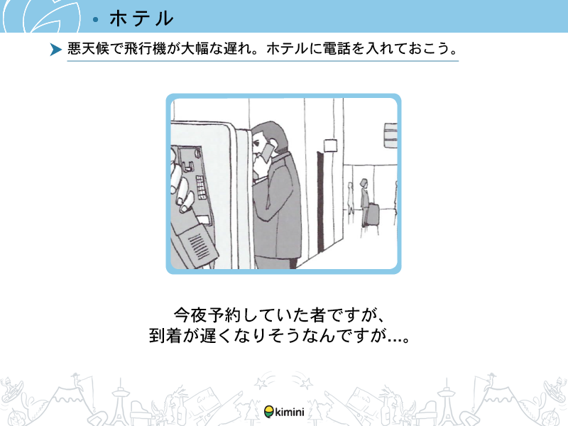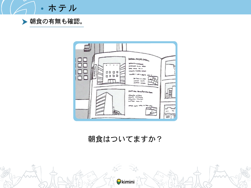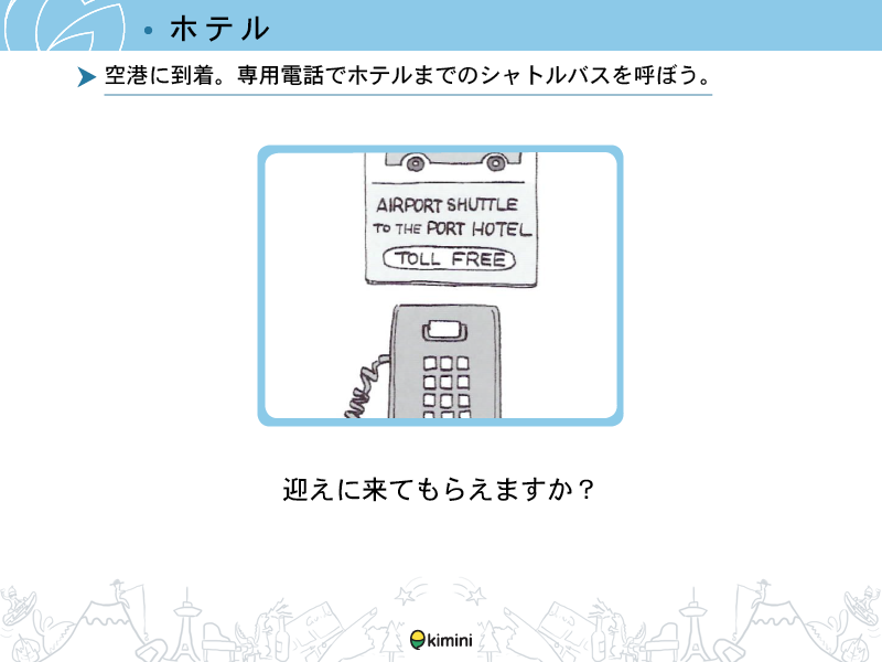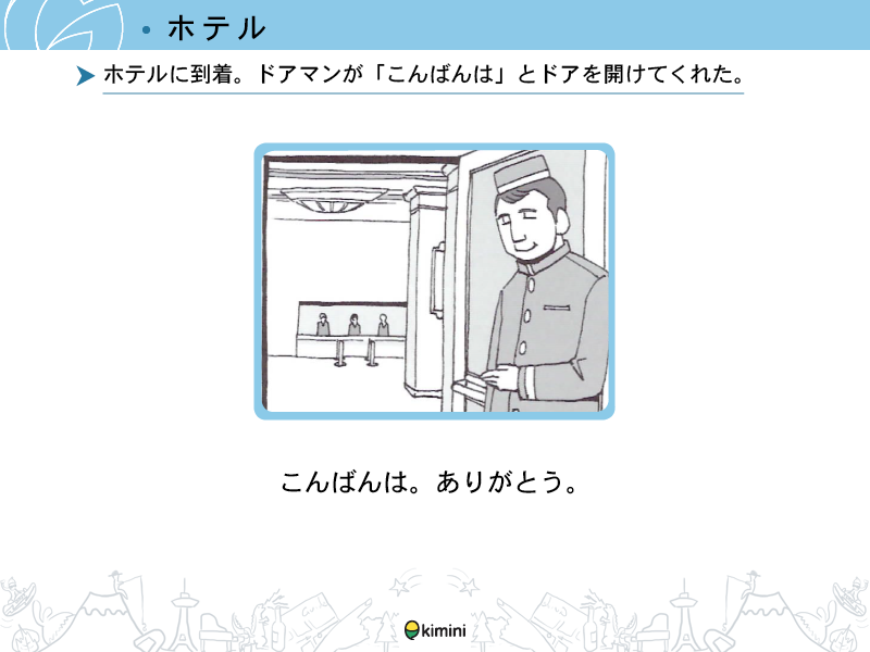 - ホテル滞在時にホテルの従業員と簡単な会話ができる