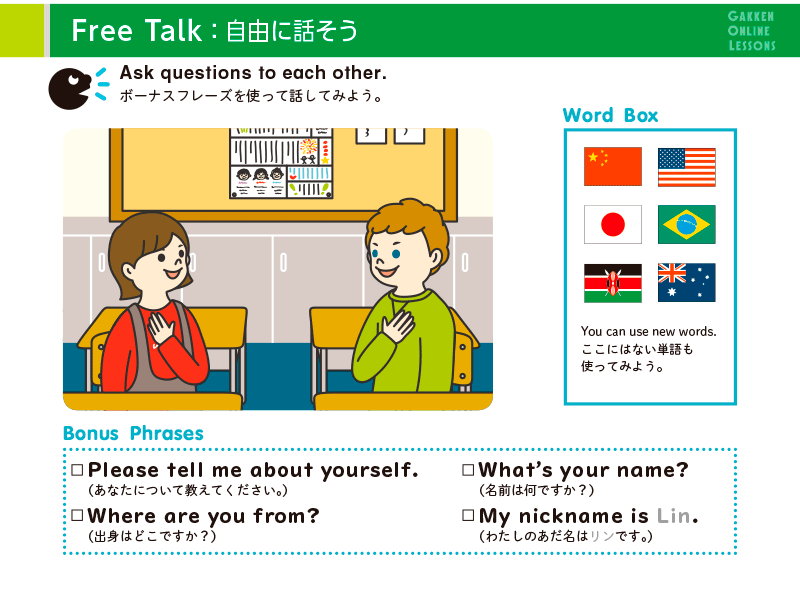 • Lesson 1 自分の名前と出身地を言ってみよう