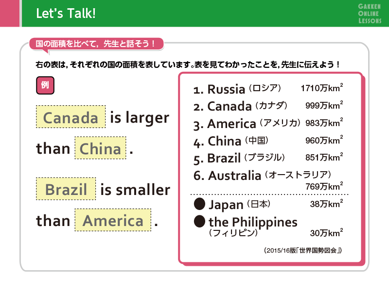 - 「・・・と同じくらい〜」など、2つのものを比較して意見を言うことができる