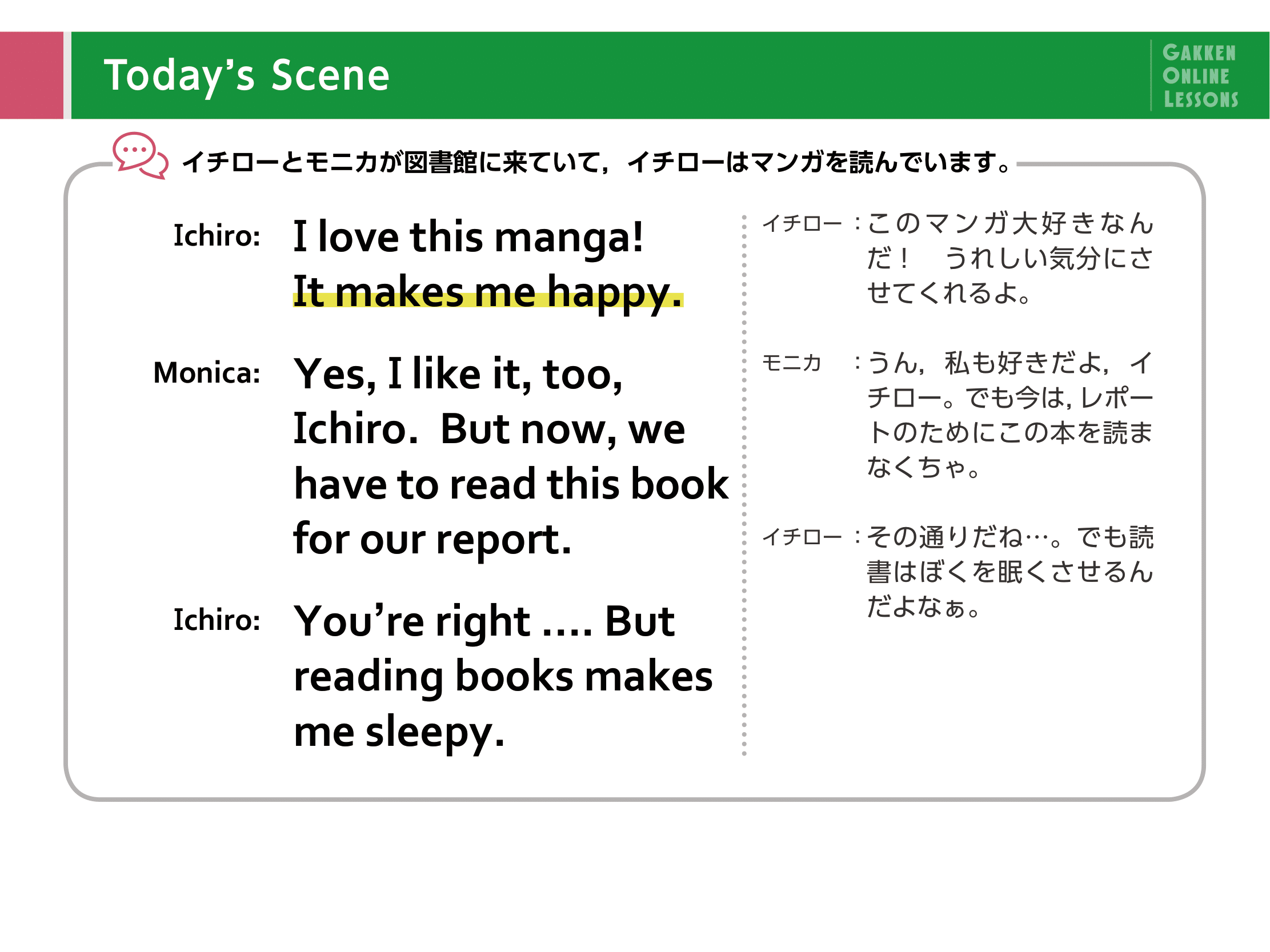 Lesson 3 リーディングIchiro and Kana met by chance in Book Café.