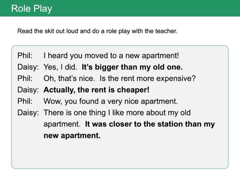 Lesson 4 副詞の比較級(more ~型)「もっと頻繁に〜してください」「もっと静かに〜します」のように、何かと比べて「もっと〜です」といった文を言えるようになります。