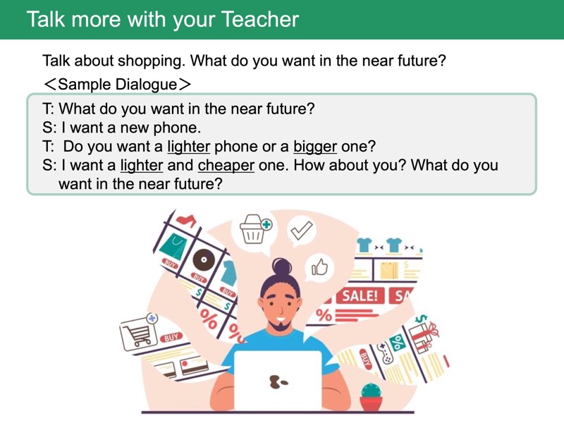 今日学習した内容を使って、講師とより自由な会話を楽しみましょう。