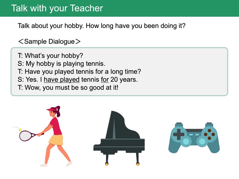 今日学習した内容を使って、講師とより自由な会話を楽しみましょう。
