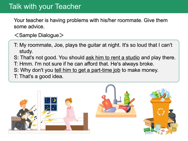 今日学習した内容を使って、講師とより自由な会話を楽しみましょう。