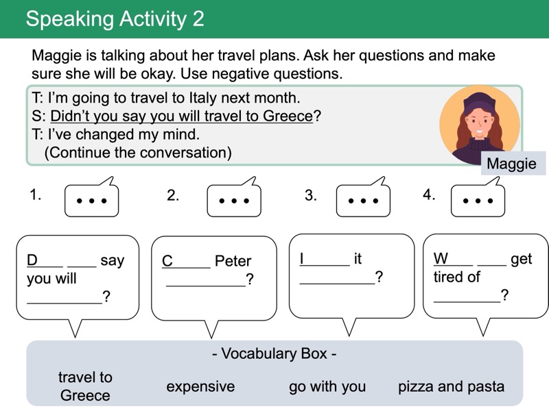 今日学習した内容を使って、講師とより自由な会話を楽しみましょう。