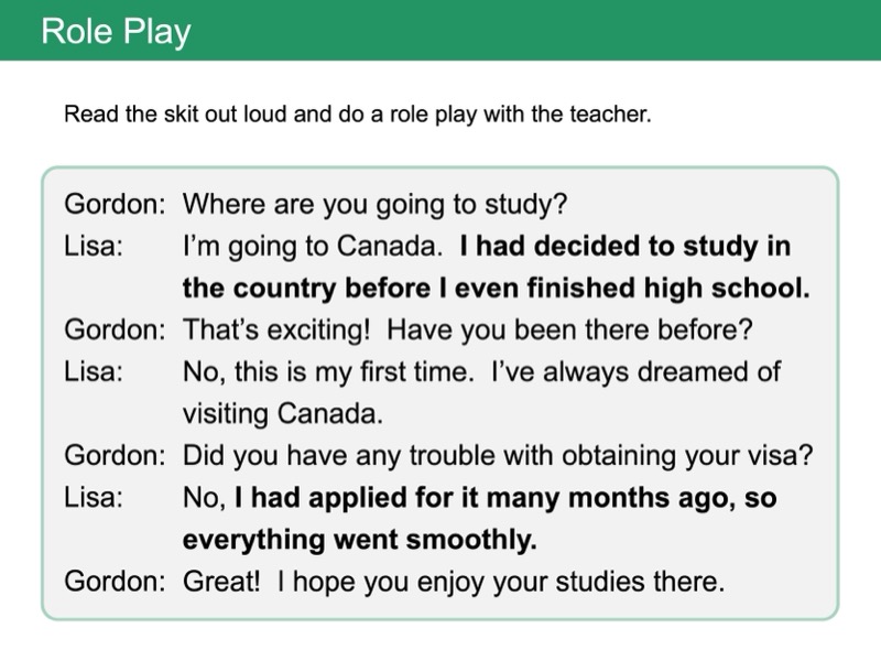 - 過去のある時点を基準にして、それより前に起こった出来事や、ずっと続いていた動作などについて説明できるようになる