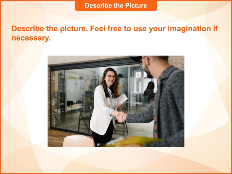 レッスンで学習するフレーズに関係する写真を描写、または関連した質問に答えてウォームアップをします。