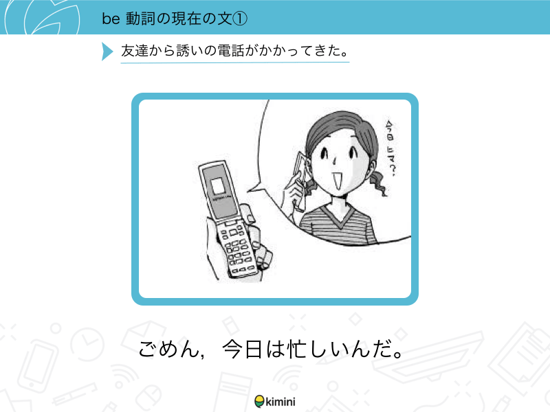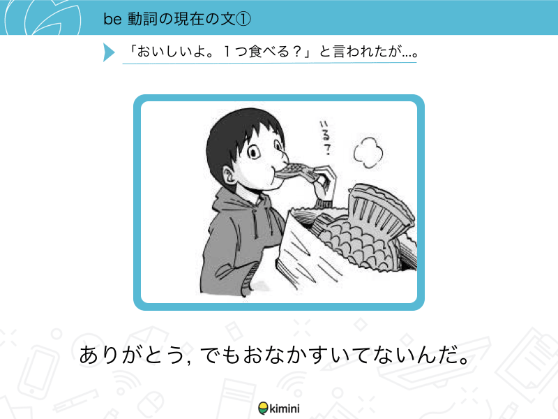 「今日は忙しいんだよね」「1個食べる?」などの日常生活でよく使うフレーズをぱっと言えるようになります。難しい文法は出てきません!「こんな簡単な言い回しで良かったんだ!」と英語が楽しくなります。