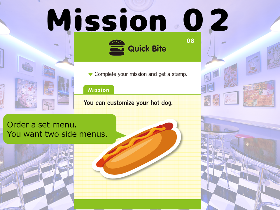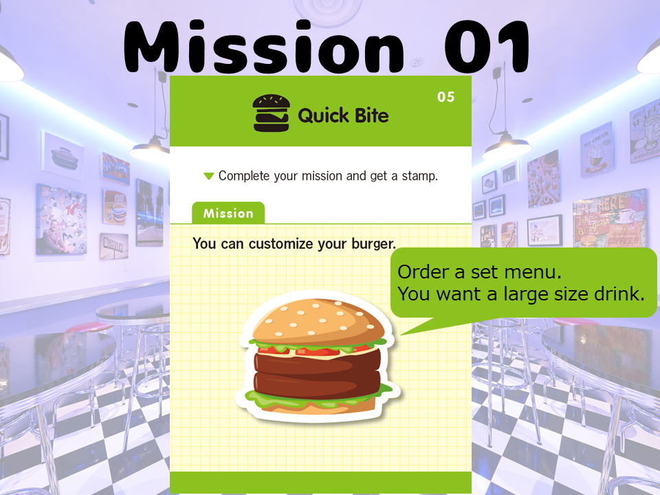 まるで海外にいるかのような気持ちで、間違いを恐れず、試行錯誤してミッションを達成していくのがポイントです。なるべく直前に学習したフレーズや単語を使って2つ目のミッションに挑戦してみましょう。