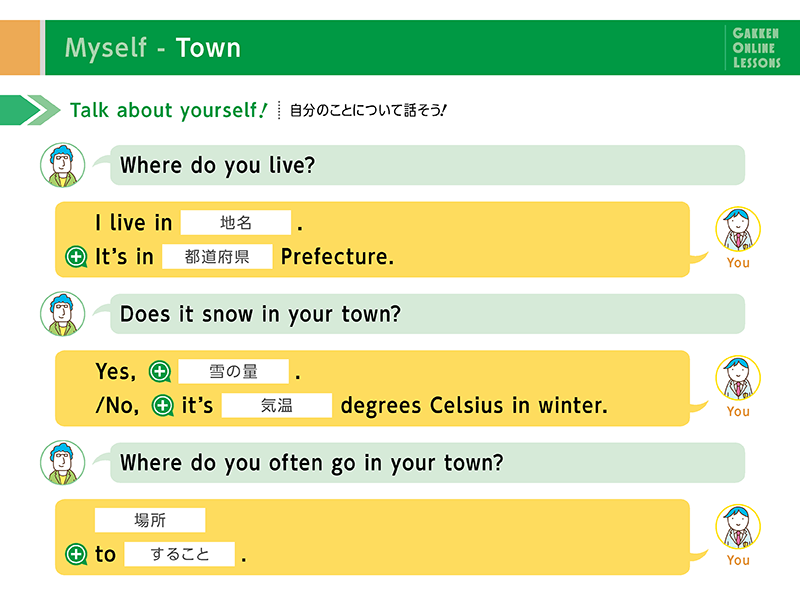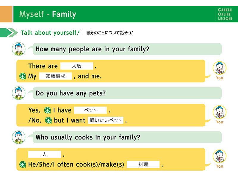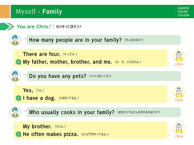 - 様々なトピックを題材に講師と会話を繰り広げます