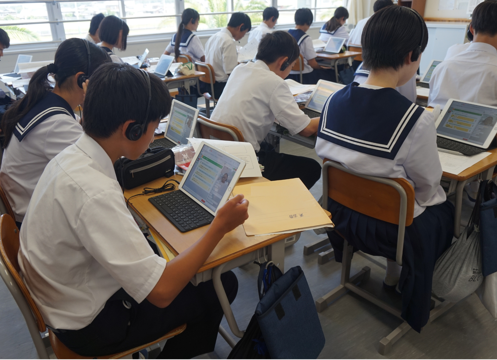 慣れ親しんだ教室で受講できるプログラムのため、児童生徒たちはリラックスして学習できていると感じます。現場の先生方からは、自ら考えて発話するという取り組みが個々の積極性や表現力の向上に役立っていると聞いています。また、レッスンを重ねる中で「自分の英語が相手に伝わる」という喜びを実感するようになり、英語学習に対して前向きな姿勢を見せる生徒が増えているようです。