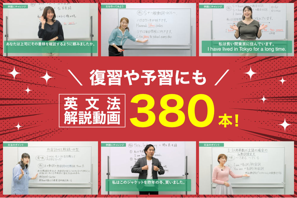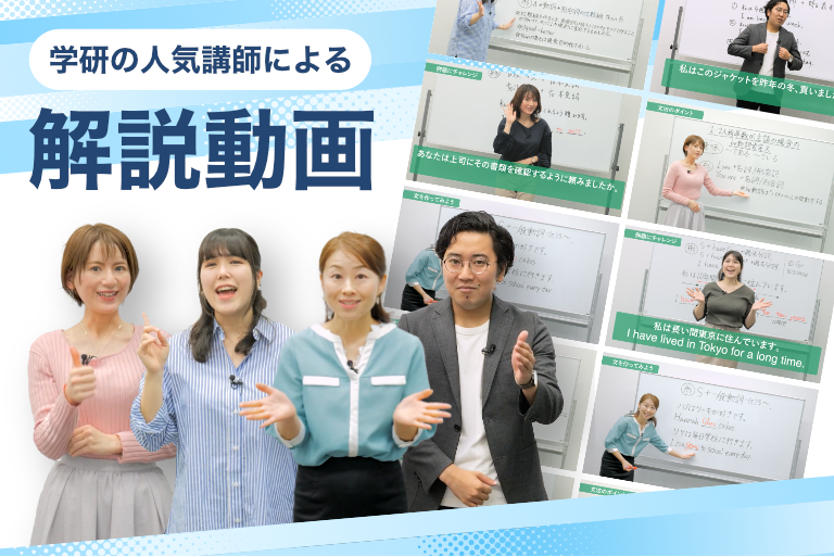 文法コミュニケーションを取るうえで重要な文法は、学研の人気講師による日本語での解説動画を380本ご用意!
